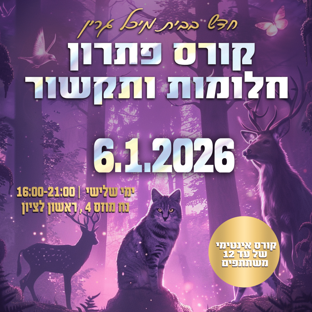 ברגע זה נשלח אלייך מייל מסודר עם כל פרטי הקורס.