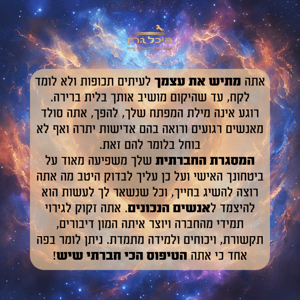 הגורל ממגנט לחייה אנשים ביקורתיים לא פעם, על מנת שתוכל לעשות עבודה פנימית ולרכך את הנוקשות הגבוהה שלה כלפי עצמה.