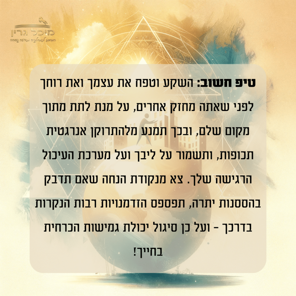 לעיתים אנו נמצאים בתקופה שמתארת עומס יותר מהרגיל ואז נכנסים פחדים הישרדותיים או ערך עצמי נמוך שמוציאים את המערכת מאיזון.