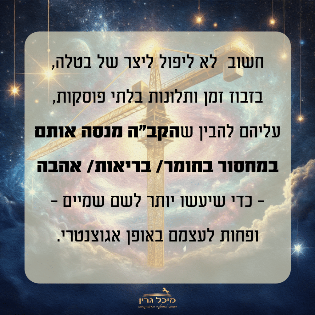 הקב״ה מביא לא פעם לחייך אתגרים רק כדי שתחזרי לדבר איתו ותנתקי את החבל מכוחות הכשל.
