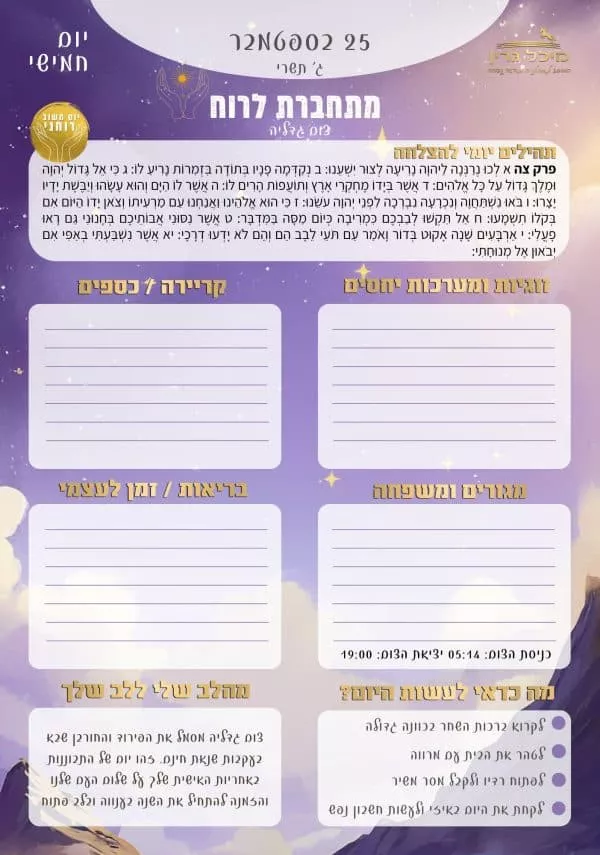יומן נומרולוגי שנתי ייחודי מבית מיכל גרין לשנת התשפ"ו 2025-2026