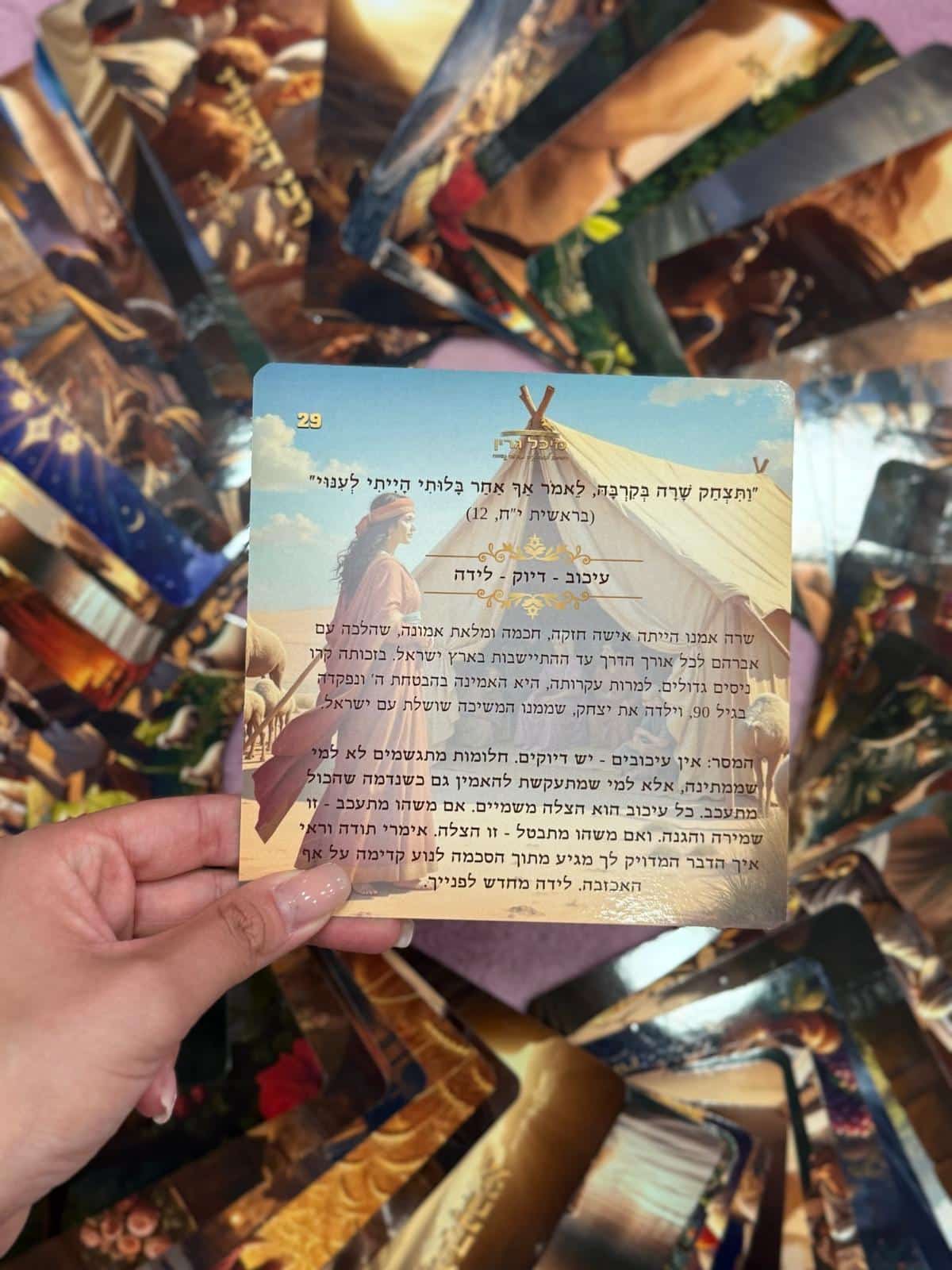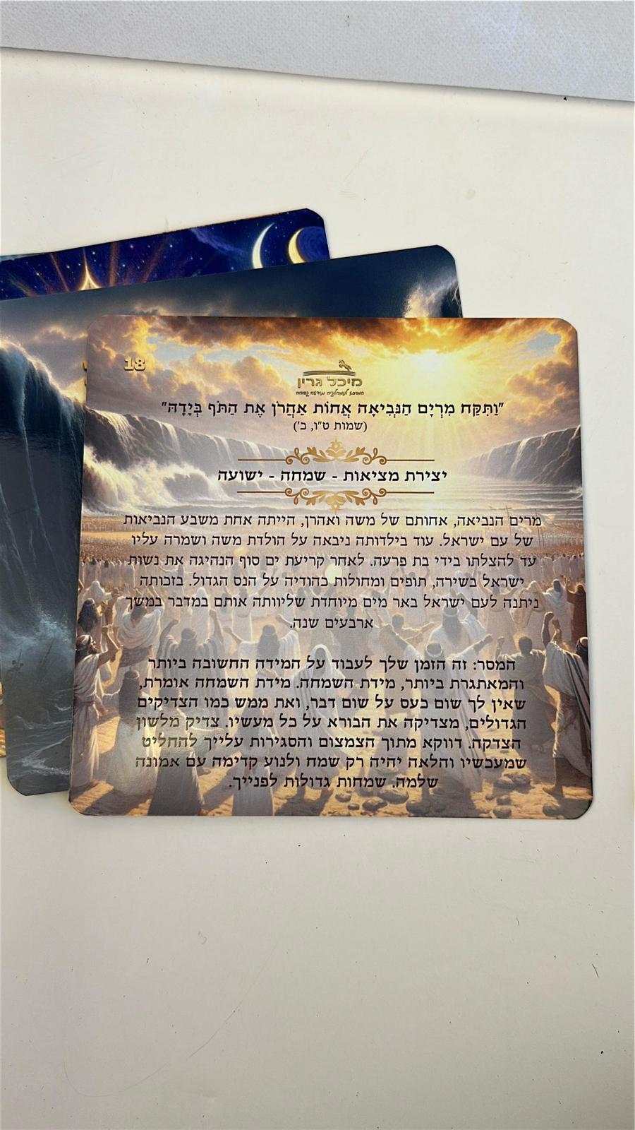 שלפי קלף באופן אינטואיטיבי והתבונני במסר שקיבלת – על התמונה, הפסוק, סיפור הדמות וכמובן המסר.