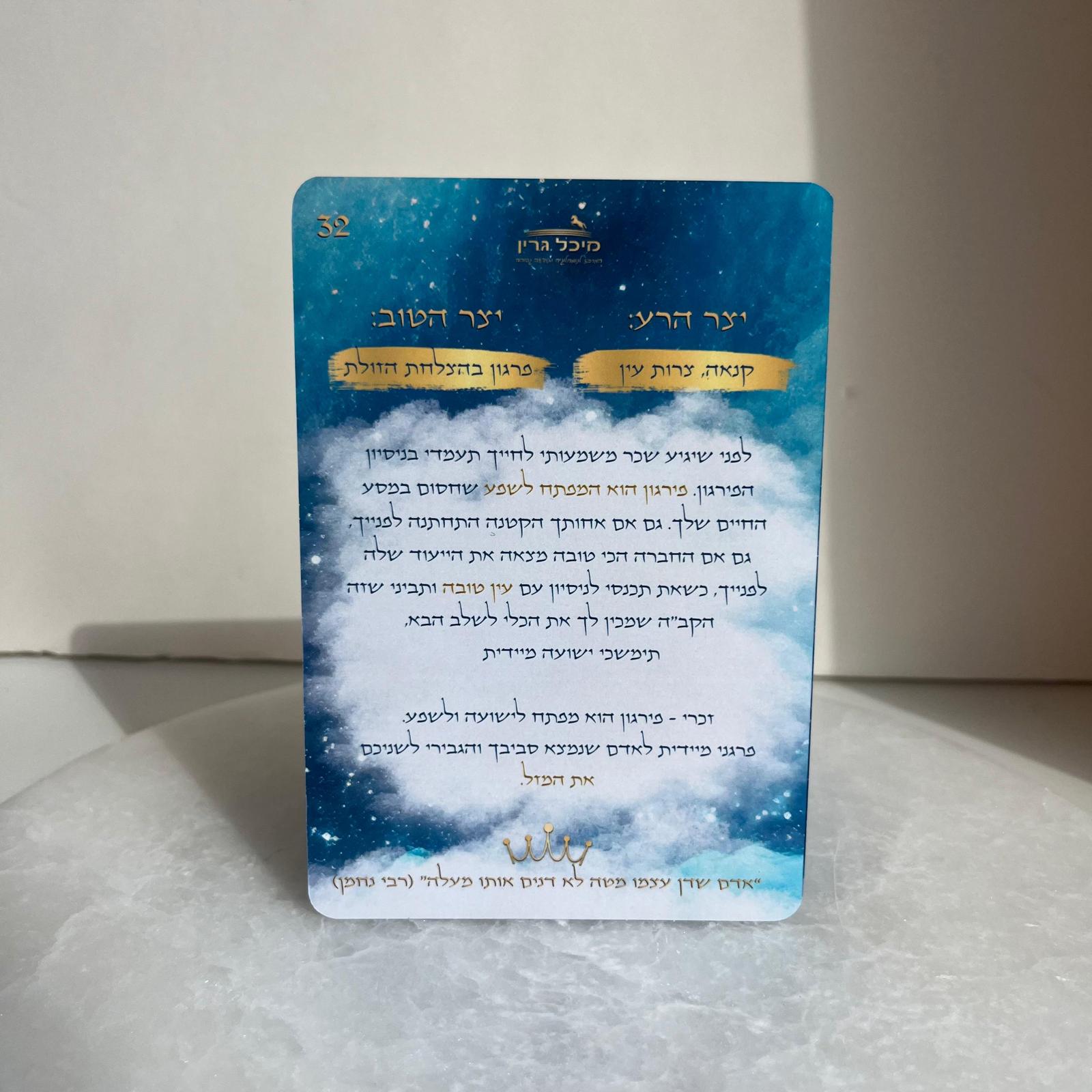 קלפי "תיקון המידות" מבוססים על שיטתה הקבלית של מיכל גרין המאפשרת לכל אדם לפתוח את מזלו באמצעות כלים פרקטיים המשנים את המציאות.