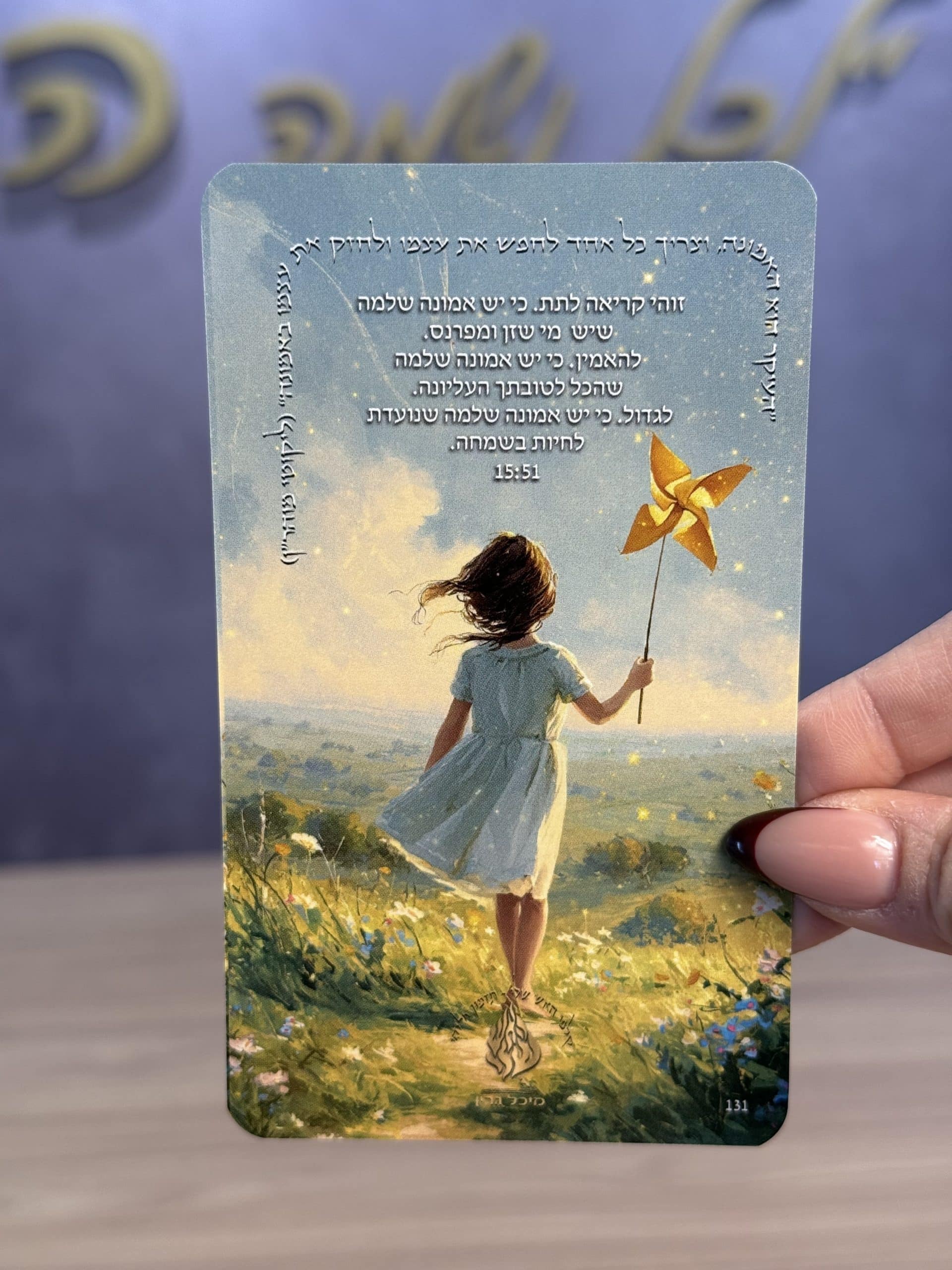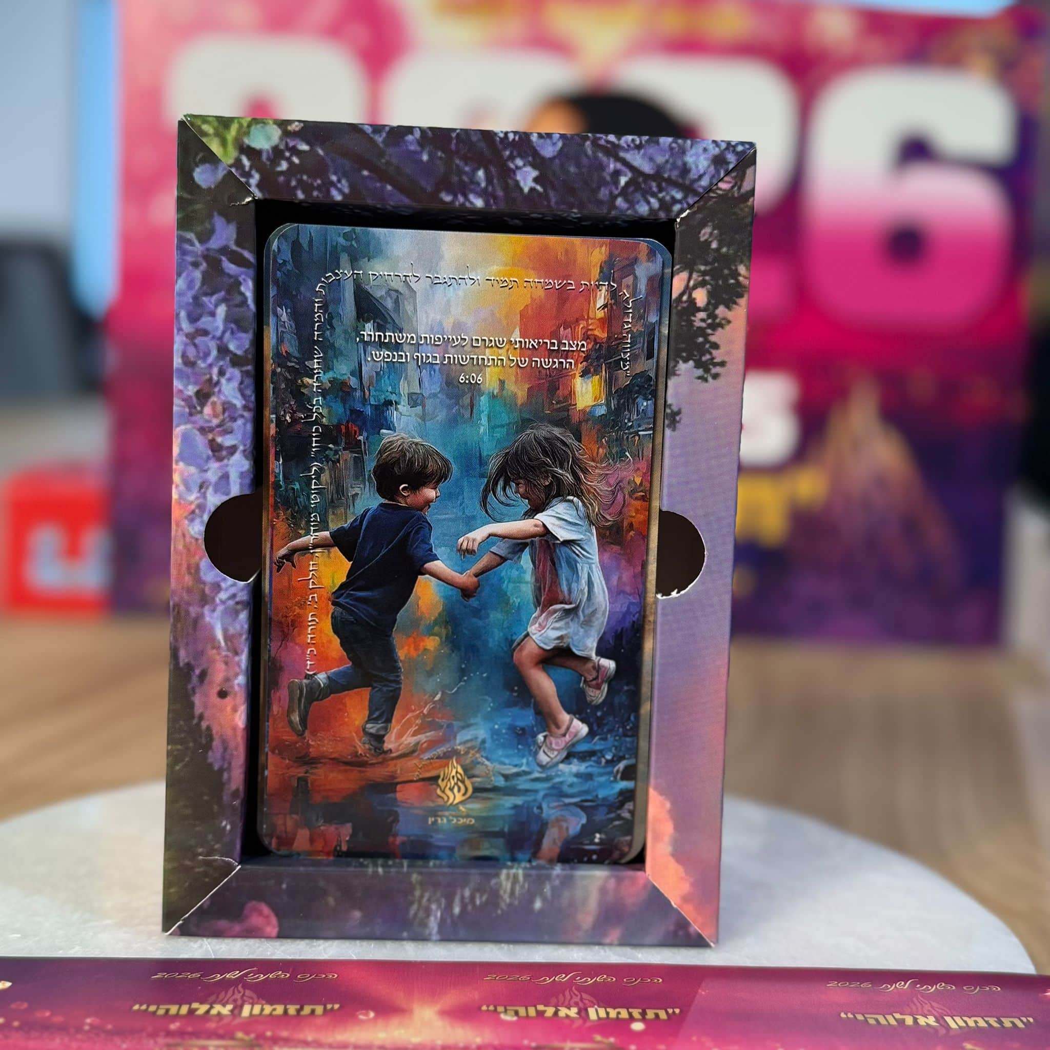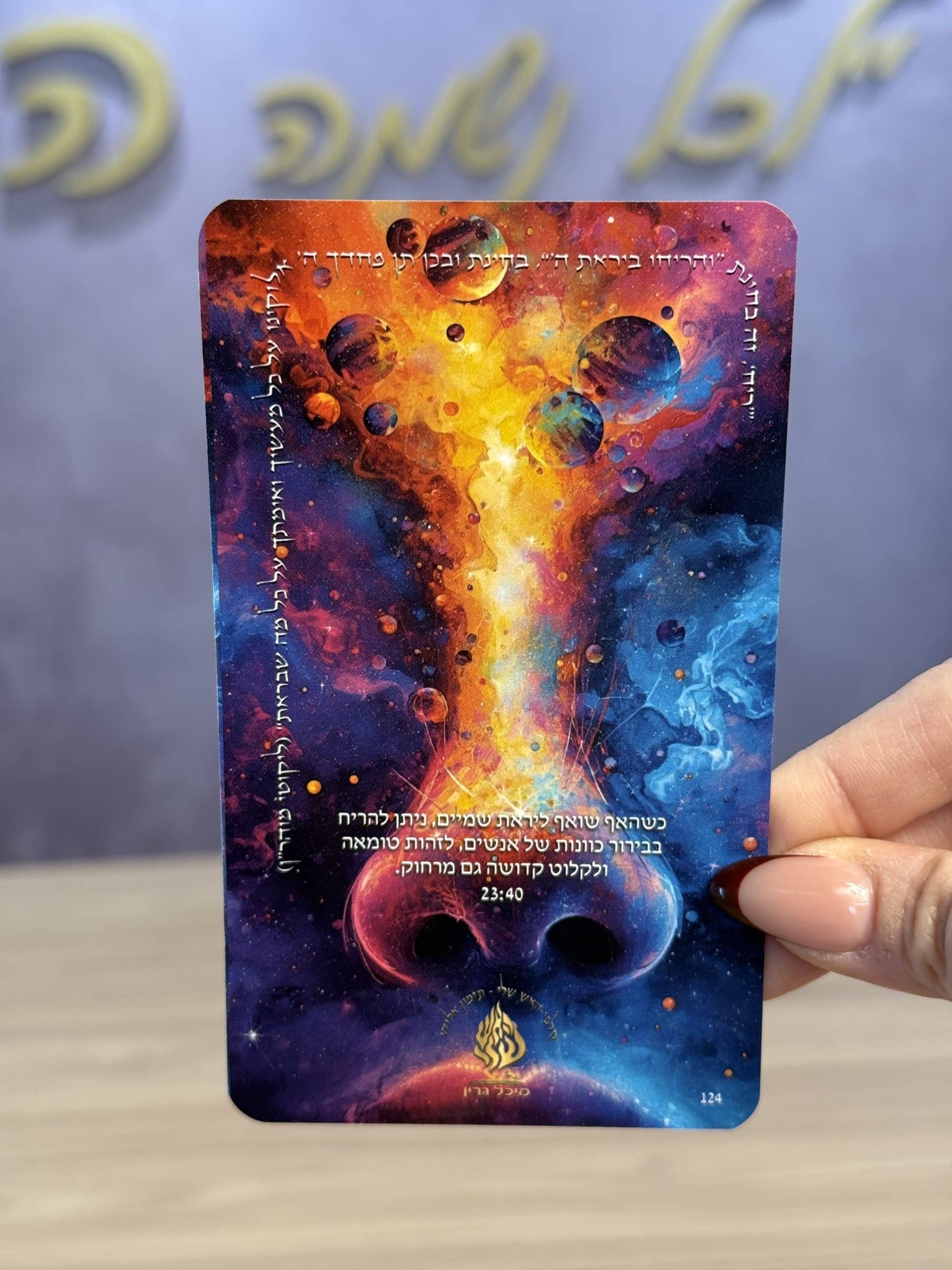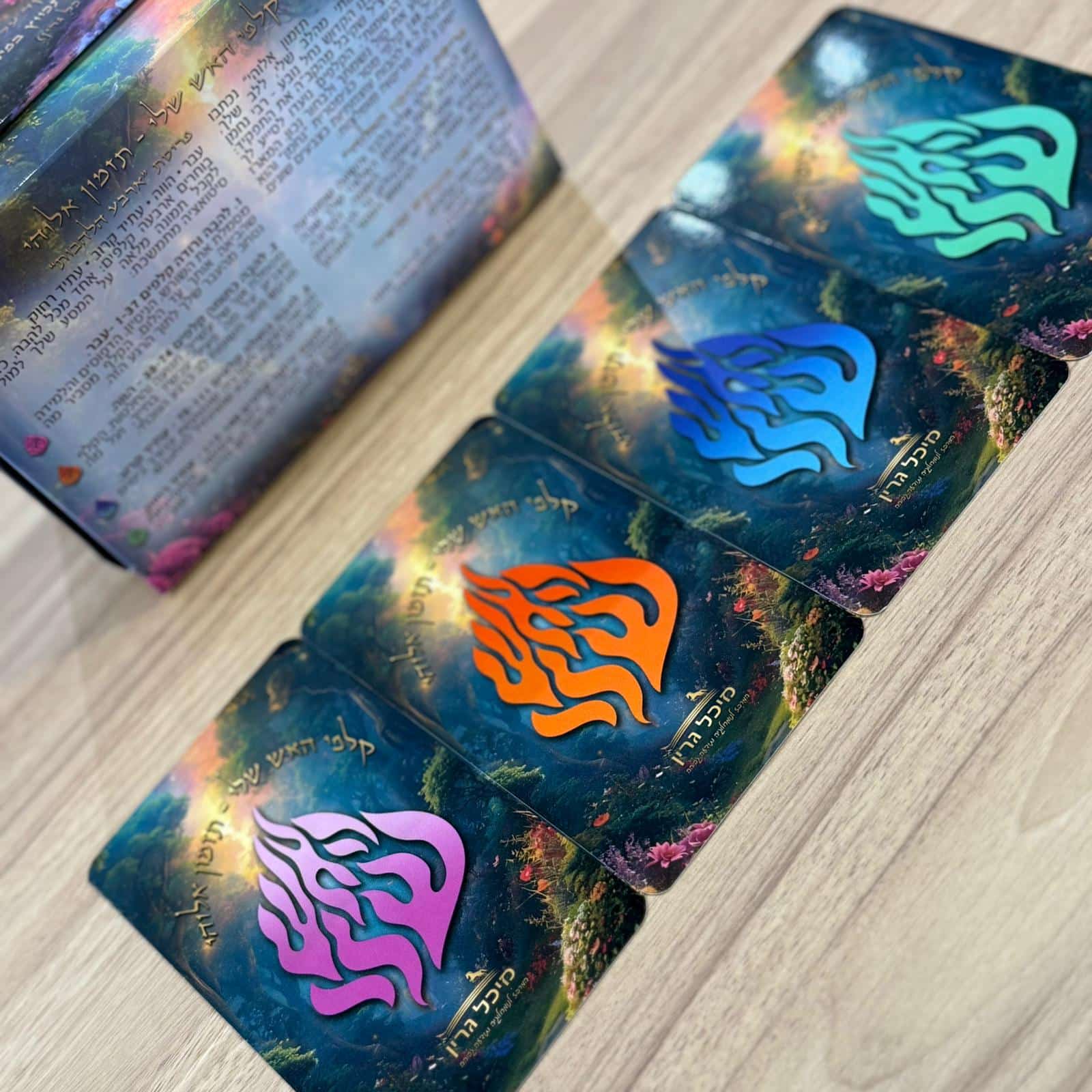 המארז מכיל 148 קלפי מסר כגימטרית “נחמן” והוא מחולק ל-4 להבות עוצמתיות בצבעים שונים.