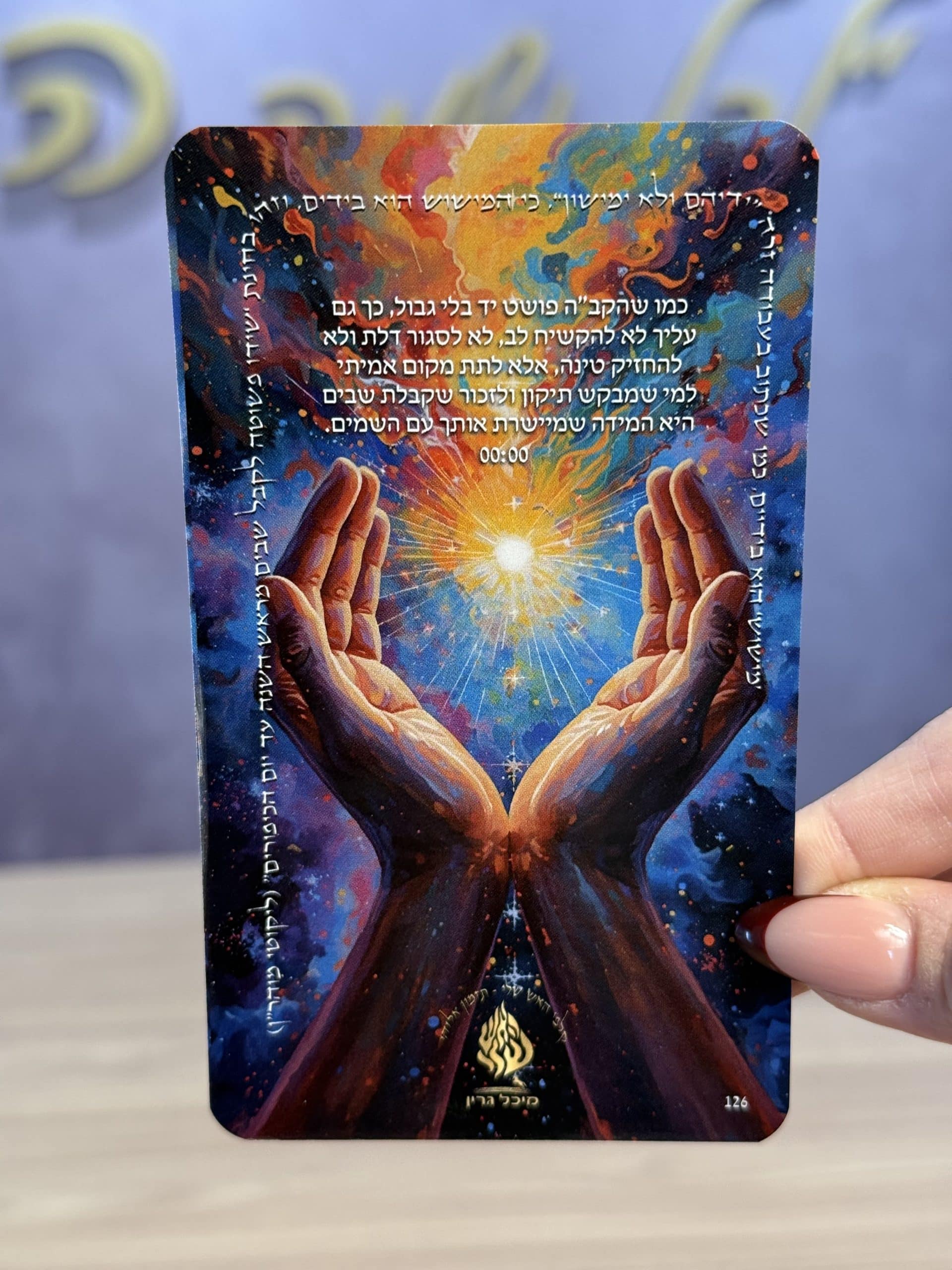 נכתבו בתקשור עוצמתי מהלב שלי, ללב שלך, בהשראת רבנו הקדוש נחל נובע – רבי נחמן בן פייגא זצ”ל שקיבל מהקב”ה את התפקיד: “מתקן הנשמות”. הקלפים נועדו לסייע לך לשמוע את קול נשמתך ולבחור נכון.